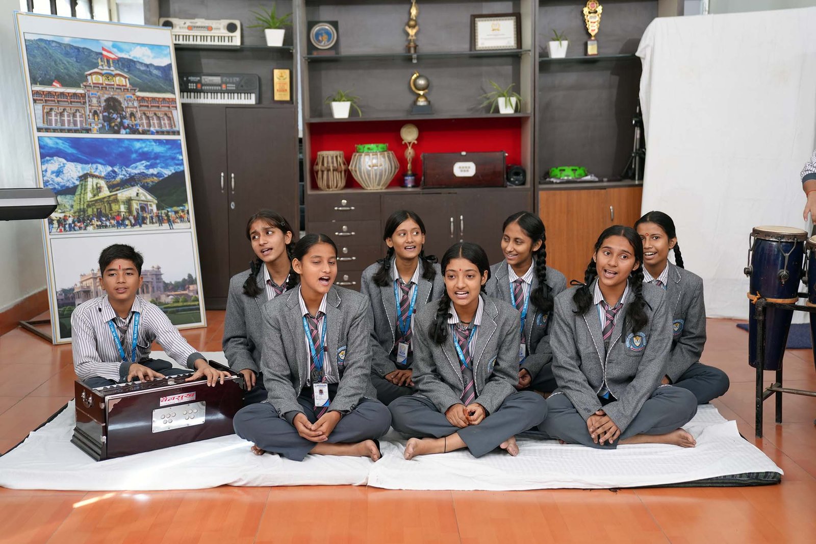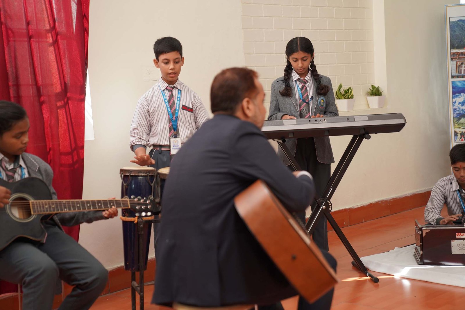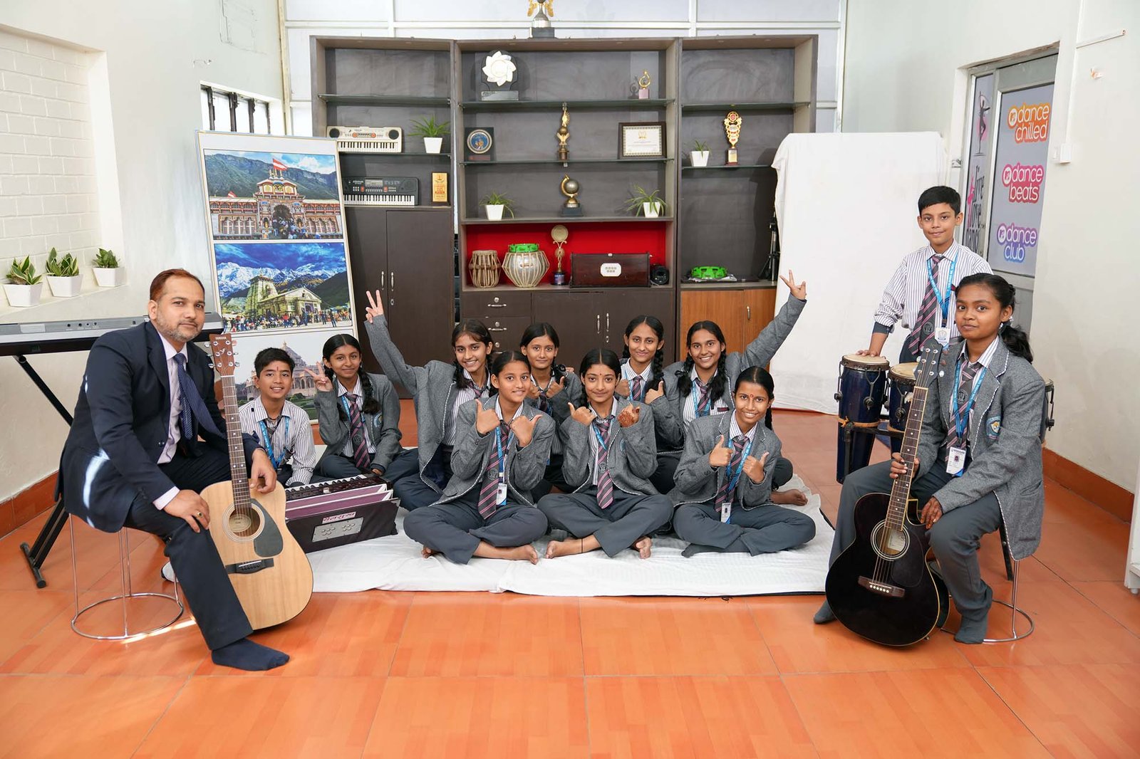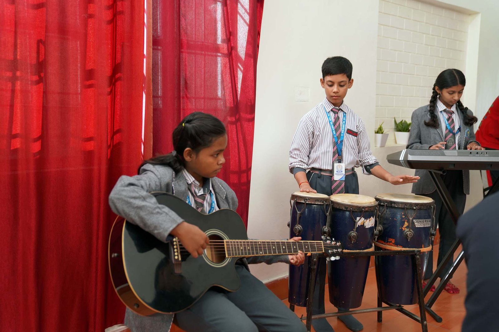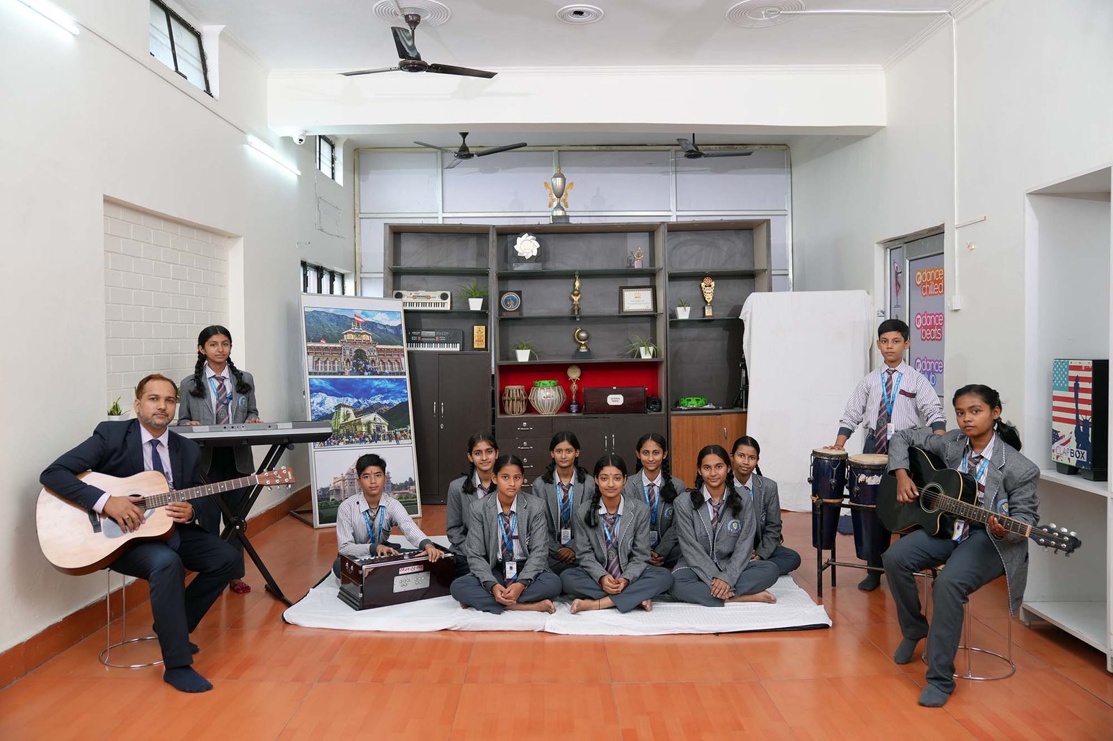 The room is acoustically treated to provide the perfect sound environment and is equipped with an impressive array of musical instruments from around the world. Whether a student is drawn to the classical roots of Indian music or the contemporary beats of the West, the facility caters to every artistic inclination.